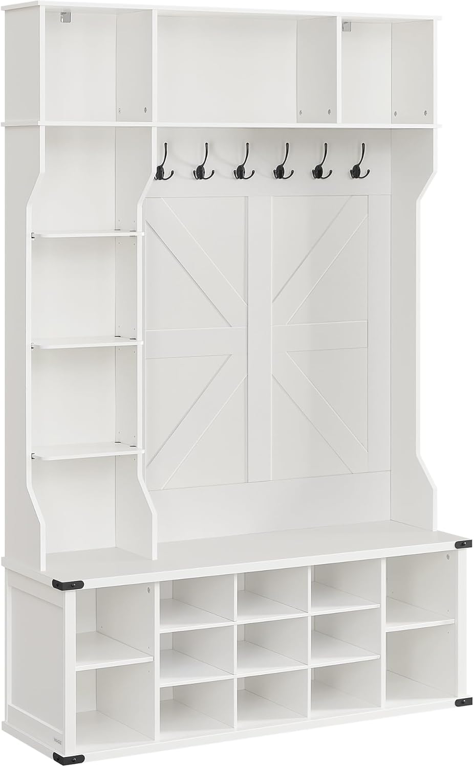 • VASAGLE Portant à vêtements, vestiaire, meuble d'entrée avec étagère à chaussures, étagères réglables, 20 compartiments ouverts, 6 crochets triples, style maison de campagne, autoportant, pour entrée