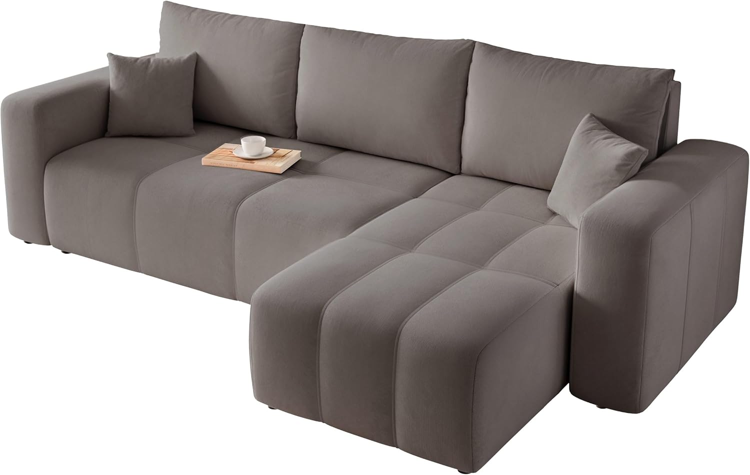• Canapé sectionnel en U Moderne,canapé Convertible 4 Places,Meuble rembourré Design Moderne,Tissu Chenille Gris