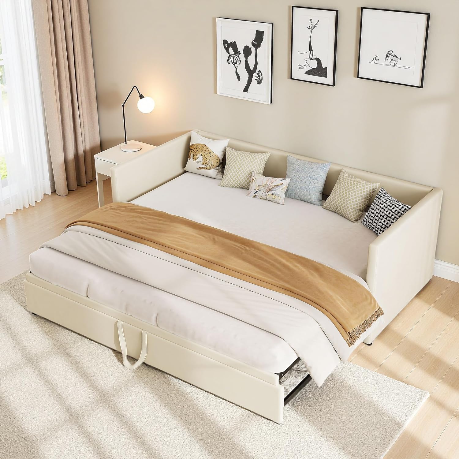 • Canapé lit Convertible 2 Places 90 180 x 200 cm, Canape Lit Rembourré avec sommier à Lattes, Canapé-lit gigogne, Extensible, Tissu Velours sans Matelas Beige